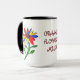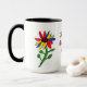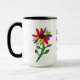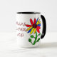 Trate a avó a um presente agradável da criança grande. As pétalas coloridas decoram esta caneca são imagem da arte de uma "criança" de uma flor. Duas flores idênticas com nome de animal de estimação da avó no meio.