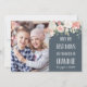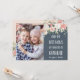 Só as melhores mães são promovidas a Grammie! Compartilhe saudações doces de Dia de as mães com esta bela carta plana que apresenta uma foto valiosa de seu neto ou netos. Personalize com seus nomes à direita, em letras brancas sobre um elegante fundo azul de ardósia adornado com pêssego e flores cor-de-água cor-de-rosa pincelada e folhagem verde. Adicione uma mensagem pré-impressa personalizada ao verso.