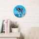 Este grande relógio azul tem 3 golfinhos saltando. Também disponível em tamanhos menores e formas quadradas.