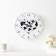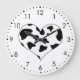 Um relógio de vaca amante apresentando um coração de impressão de vaca no meio do relógio.