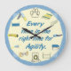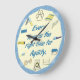 Obstáculos de agilidade para cada vez. Este relógio de agilidade de cão é perfeito para o seu clube ou para o presente de um juiz. Onze obstáculos de agilidade dos cães e uma pata são os "números" do relógio, "Toda vez é o momento certo para agilidade" no centro. O fundo central é amarelo pálido, a borda externa é azul médio texturizado.