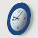 Um relógio refrescante com fundo azul real e centro branco atmosférico. Este design distingue-se por ter números negros e mãos. Disponível em formas quadradas e redondas.
