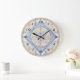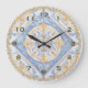Ouro azul bonito e azulejo branco italiano ou português olham o relógio da cozinha. Há uma caneca de café e uma toalha de chá. Veja outro relógio semelhante: https://www.zazzle.com/blue_gold_white_talavera_azulejo_look_wall_clock-256694712722411141