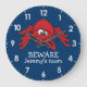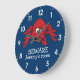 Relógio de arte gráfica com aranha e mosca viscosos. Excelente de adicionar humor num quarto infantil. Com este belo e divertido bico chamado relógio de parede de meninos em azul e vermelho.