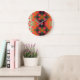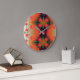 Um relógio de designer com um design floral vermelho arrojado. O fundo branco pode ser alterado para qualquer cor para corresponder à decoração.