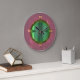 Uma bonito borda cor-de-salmão rosa com um centro iluminado em verde limão Este relógio de parede redondo da cozinha também está disponível em forma quadrada. Números Dourados completam este design.