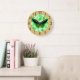 Grande Borboleta Verde Sobre Relógio De Folhas Verdes