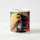 Abrace a aventura com a nossa moça de café Combustível suas manhãs com uma dose de aventura e estilo! Nossa caneca de café exclusiva apresenta uma design impressionante de uma garota seguramente andando numa moto escura e preta. Vestida em uma jaqueta de couro preto e chique e capacete, ela epitomiza a liberdade e o frio. A moto moderna, enfeitada com detalhes cromáticos brilhantes, acrescenta ao olhar dinâmico. Contra o pano de fundo de um sol vibrante e colorido, a imagem irradia energia e entusiasmo.