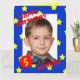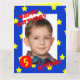 Este grande cartão de aniversário apresenta sua foto como o ponto focal cercado por um quadro azul com estrelas amarelas sobre ele. As palavras "FELIZ ANIVERSÁRIO" aparecem em vermelho no canto superior esquerdo da fotografia e o nome do aniversariante aparece no canto inferior direito com a idade de aniversário que pode ser personalizada num círculo vermelho no canto inferior esquerdo. Este é um grande cartão de aniversário único, que é excelente para crianças que são rapazes. Copyright Kathy Henis