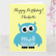 Grande cartão extra grande de aniversário com bonitinho desenho de coruja, personalizado com nome. Cartão azul engraçado. Impressão de aves animais. Desejos personalizáveis e cor de fundo pastel. Cartão de saudação Gigante XL com tipografia elegante de script. Design para filho, neto, filha, neta, prima, irmã, netos, etc.