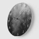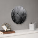 Um relógio de parede com números brancos e um fundo de um céu mauzinho de Halloween com árvores negras ao longo de uma estrada escura assombrada, corvos góticos e uma lua de cheio nublada em preto e branco. Este relógio tem números brancos, mas você pode excluí-los para um plano de fundo simples.