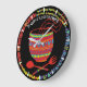 Relógio colorido da cozinha mexicana comida com uma taça decorativa de comida, garfo e colher, no estilo Aztec, com design áspero e texto personalizado. Desculpe, meu espanhol é terrível, mas eu sei boa comida quando eu o como!