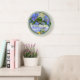 Lindas drangas azuis com pequenos corações de ouro e anéis de casamento, borboleta azul e espaço para o teste de sua escolha.
