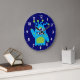 Relógio de arte gráfica com um amistoso monstro verde-alienígena azul. Excelente de adicionar humor num quarto infantil.