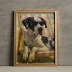 Esta ilustração divertida de um cão Grande Dane na praia foi criada com o auxílio da IA e então editada com texturas reais. Esta impressão é perfeita para decorar suas paredes ou como um presente pensativo para qualquer amante de cachorro.