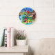 Wall Clock, Moldura de madeira branca redonda de 25,4 cm