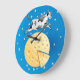 Relógio Decorativo Divertido que mostra a Vaca saltando sobre a Lua.
