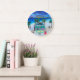 Wall Clock, Moldura de madeira branca redonda de 25,4 cm