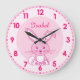 Um belo desenho gráfico de berçário cor-de-rosa de um relógio infantil de coelho. Personalize com seu próprio nome. Atualmente, lê Isobel. Desenho gráfico exclusivo de Sarah Trett.