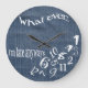 Engraçado Seja o que for que sou Late Denim Clock, Burlap olha para o fundo com números misturados no relógio engraçado do bobo inferior para aqueles que estão sempre atrasados de qualquer forma. presente de excelente para chefe.