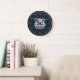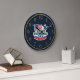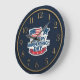 Celebre o seu patriotismo com este relógio único e festivo. O design apresenta um rosto azul marinho clássico com números de ouro, enquadrando um gráfico central com uma bandeira americana e uma faixa que diz 'DIA DE INDEPENDÊNCIA FELIZ'. Este relógio decorativo é uma adição perfeita a qualquer casa, escritório ou celebração patriótica. Faz um presente pensativo para veteranos, patriotas, ou qualquer um que queira mostrar seu orgulho americano.