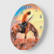 Este End of the Trail Clock apresenta um tradicional design nativo americano. Disponível em relógios de vários tamanhos e formas.