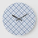 Um relógio de parede acrílico redondo, com um padrão de verificação diagonal do Indigo Azul e Branco. Parte da coleção Posh e Painterly 'Indigo', esse padrão pode ser facilmente ajustado para ajustado qualquer Relógio de Parede.