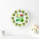 Este relógio legal tem um design artístico moderno de bolas de picles verdes com o logotipo quadrado "Eu adoro picelball" no centro.