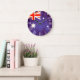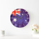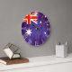 Um relógio de bandeira australiano de estilo antigo único em tons vermelhos, brancos e azuis. Projetado usando a bandeira da Austrália e adicionando um pouco de tratamento de vintagem. Produzida por Sarah Trett. Pareceria excelente num quarto patriótico, salão ou bar.