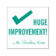 Este design de carimbo inspiracional apresenta a mensagem elogiante "MELHORIA ENORME!" e o nome de um educador personalizado. Também apresenta uma marca de verificação decorativa. Ele poderia ser usado por um professor, educador ou orientador na marcação de tarefas, para indicar que o aluno fez um trabalho de excelente.
