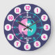 Codificado colorido do relógio gráfico de parede para ajudar seu filho a ler um relógio. Este apoio pedagógico colorido inclui minutos e horas e passadas e a brincadeira de fazer da criança de contar o tempo. Clock colorido em azul escuro, rosa, aqua e branco com uma borboleta branca e pode ser personalizado com seu nome de escolha. Atualmente, lê Emily. Projetada exclusivamente por Sarah Trett. Um excelente para o quarto de uma garotinha que está aprendendo a ler um rosto do relógio.