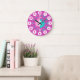 Codificado colorido do relógio gráfico de parede para ajudar seu filho a ler um relógio. Este apoio pedagógico colorido inclui minutos e horas e passadas e a brincadeira de fazer da criança de contar o tempo. Clock colorido em pinks, aqua e branco com uma borboleta branca e pode ser personalizado com seu nome de escolha. Atualmente, lê Kylie. Projetada exclusivamente por Sarah Trett. Um excelente para o quarto de uma garotinha que está aprendendo a ler um rosto do relógio.
