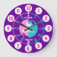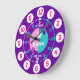 Codificado colorido do relógio gráfico de parede para ajudar seu filho a ler um relógio. Este apoio pedagógico colorido inclui minutos e horas e passadas e a brincadeira de fazer da criança de contar o tempo. Clock colorido em pinks, aqua e branco com uma borboleta branca e pode ser personalizado com seu nome escolhido em um fundo cor roxa escura. Atualmente, lê Katie. Projetada exclusivamente por Sarah Trett. Um excelente para o quarto de uma garotinha que está aprendendo a ler um rosto do relógio.
