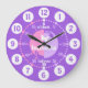 Codificado colorido do relógio gráfico de parede para ajudar seu filho a ler um relógio. Este apoio pedagógico colorido inclui minutos e horas e passadas e a brincadeira de fazer da criança de contar o tempo. Clock colorido em rosa, roxo, lilás e branco com uma borboleta branca e pode ser personalizado com seu nome de preferência. Lê-se Isabella. Projetada exclusivamente por Sarah Trett. Um excelente para o quarto de uma garotinha que está aprendendo a ler um rosto do relógio.