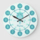 Relógio gráfico para crianças. Este relógio colorido de crianças engraçadas inclui minutos e horas para ajudar a fazer a brincadeira da criança de contar o tempo. Personalize com o nome abreviado de sua escolha, lê Natalie. Projetada exclusivamente por Sarah Trett. Um excelente a uma coruja ou ao quarto de criança que ama pássaros, que está aprendendo a ler uma cara do relógio.