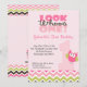 Quem está comemorando um primeiro aniversario? Este convite é ajustado em uma luz - fundo cor-de-rosa com a com uma guarnição colorida da beira do teste padrão de ziguezague na parte inferior. Há uma coruja pequena adorável do rosa quente que está em um grande número 1. "Esse" é claro - rosa com as bolinhas pequenas brancas. Personalize com sua informação do partido. Verifique para fora todo o design, cores, e produtos que restantes nós temos em nossa loja. ilustrações do ©JW
