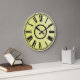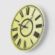 Deixe o decorador em você sair! Os relógios de parede são uma bela e barata adição a qualquer quarto. Este relógio bonito tem um efeito de tempo macio, em amarelo-manteiga para combinar ou contrastar com a sua decoração. Os números são negros e negros algarismos romanos, o que dá ao relógio uma aparência clássica. Este design está disponível em 3 tipos de relógio de parede, dois redondos e um quadrado. Clock Corner é um compro de Design Scarebaby, e é apoiado pela garantia Zazzle.