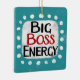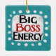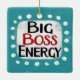 "Big Boss Energy" é um design de texto bonito em azul com texto preto e vermelho, junto com uma forma de sotaque branca e pontos brancos texturizados ao seu redor.