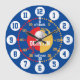 Relógio de parede gráfico para meninos colorido, codificado por cores para ajudar a criança a ler as horas. Este colorido auxílio de ensino inclui minutos e horas, passado e para, tornando divertido para as crianças dizerem as horas. O relógio é codificado por cores em azul, amarelo, vermelho e branco, apresentando um baseball e o seu nome no centro do relógio. Este relógio pode ser personalizado com o nome de sua escolha. Atualmente lê Quintin. Faria um ótimo presente de Natal ou aniversário personalizado. © Arte e design por www.mylittleeden.com