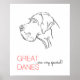 Grande e maior? Não! Apenas um belo desenho de Dane e uma fonte fina e fina. Minimalismo para cães maxi.