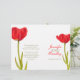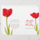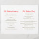 Tulipa vermelha brilhante e de dois lados num programa de casamento branco. Parte do conjunto de papéis de carta de tulipas vermelhas de solteiro. Vermelho brilhante, verde e branco. Edite este programa de casamento com seu próprio nome, datas, texto da cerimônia, assistentes de festa de casamento e obrigados. Um programa simples, mas elegante, simplesmente substitua o texto de amostra pelos detalhes de suas informações de casamento e dobre programas ao meio na entrega. Simples estilo moderno de primavera e programa romântico de cerimônias de casamento. Design e pintura aquosa de Sarah Trett.