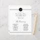 Personalize este cartão do programa de casamento preto e branco, impressão, bonito e na moda elegante, grande design perfeito para um grande casamento com muito lugar para nomes. Design moderno e nítido com texto preto e design em fundo branco. Convocação de Casamento, Cartão de Resposta de RSVP e semelhantes podem ser encontrados na Coleção de Casamentos de Monograma Branco Chic Black.