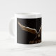 Uma caneca de café com o Punho do anjo do ogro sobre ela com um fundo preto.