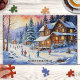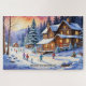 Quebra-cabeça maravilhosamente grande apresentando uma feliz cena de maravilha de inverno com crianças brincando na neve. Uma bela quebra-cabeça de família para qualquer dia de inverno e também para o Natal.
