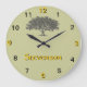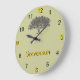 Espalhando madeira de carvalho abaixo da posição das 12 horas. Na parte inferior, personalize com seu nome. Os algarismos 12, 3, 6 e 9, assim como o nome são ouro com sombras. Personalize a cor de fundo à sua escolha.