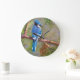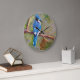 Um belo Blue Jay adiciona estilo e cor à sua decoração com este belo relógio redondo. Escolha entre as mãos pretas ou cinzas para torná-la sua peça de arte gentil!