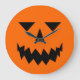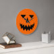 Preto na face da lanterna laranja de abóbora com olhos e nariz de triângulo e um mau.