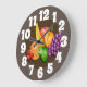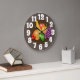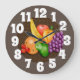 relógio com fruta sobre fundo castanho, a cor de fundo atrás dos números pode ser alterada.