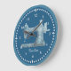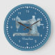 Esta cara do relógio seria um presente perfeito para qualquer um que adora costurar ou colar. Impresso com uma imagem de máquina de costura de estilo vintage em um padrão de tecido azul damask em um fundo azul correspondente, e personalizado com seu próprio nome ou outro texto, seria um sotaque agradável para qualquer sala de costura ou de desenho. Sua escolha de dois tamanhos.