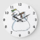 Os relógios de parede de Snowman acrescentam a diversão na hora de Natal. Snowman é a arte original de desenho animado Steamy Raimon.